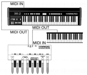 en branchant tout simplement le out du clavier maitre sur le in du XB1, ça doit marcher du premier coup, il faut savoir que la prise midi peut vehiculer 16 canaux et qu'en chainant theoriquement 16 synthés sur 16 canaux differents , un seul clavier peut piloter les 16 separement juste en changeant de canal.